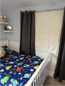 Installation was incredibly easy. The shade comes with adhesive Velcro strips and optional nails (which we didn’t even need). I (okay fine, Nik) had it up in minutes. And when I stepped back—total darkness. Not the “almost black” you get with most curtains. I’m talking pitch black. It’s been amazing for naps and bedtime, especially now that the days are longer.