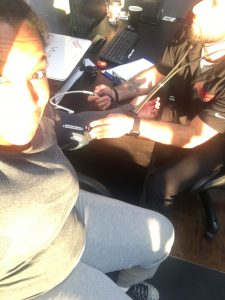 He put all the little pads on my fingers and toes and then in 1 second pressed a button that allowed an electromagnetic current to get my body composition. The whole thing was really cool. I also did a grip strength test where I learned that I have no strength in my left hand – lol.