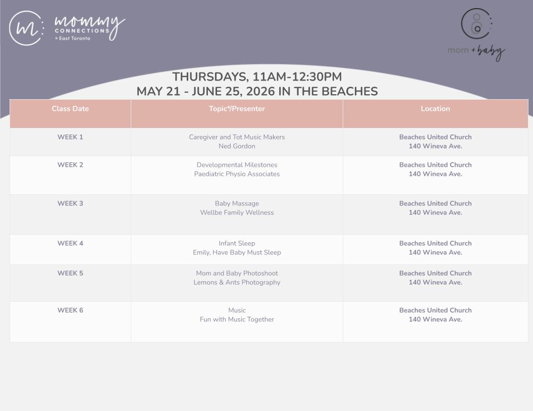 Learn, have fun with your baby, and meet other new moms in East Toronto!
