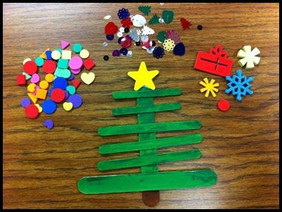 Have your child color the popsicle sticks, then glue together is tree shape. Some quick cutting/breaking is needed.