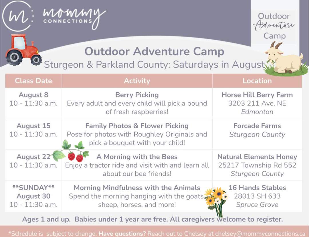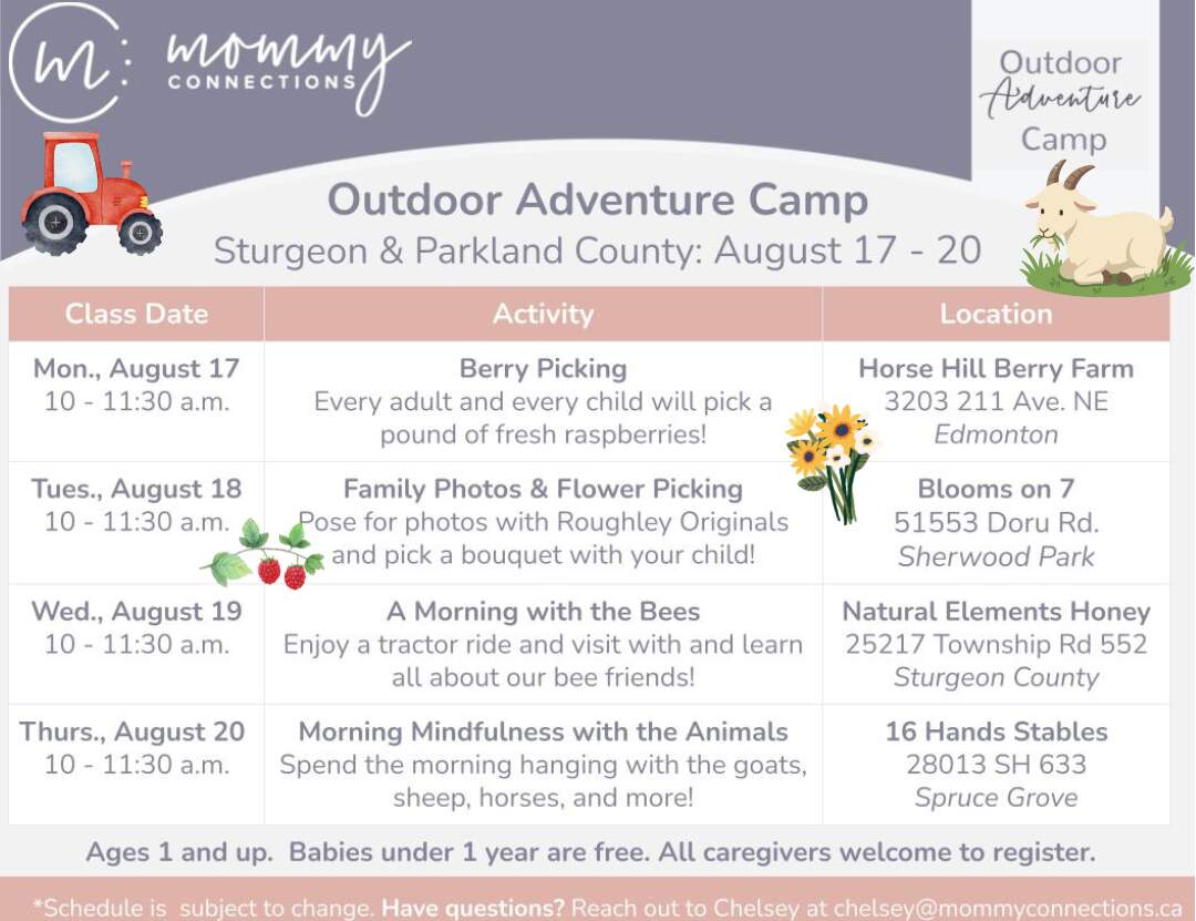 Our Outdoor Adventure Adventure Camps are back this summer for families in Edmonton and St. Albert! They’re the perfect summer adventure for the whole family. Every week will be a new adventure! You’ll explore new places and connect with other families, all while learning and spending time outdoors with your children. This camp is great for the whole family and all ages are welcome, including school-aged children. Each camp includes four outdoor adventures. Moms, dads, grandparents, and any other caregiver are welcome to register.