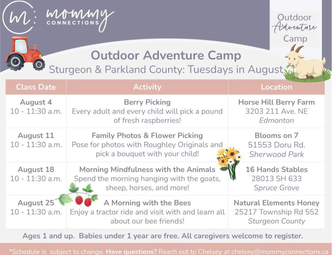 We will learn about nature and growing food as we pick raspberries at Horse Hill Berry Farm. We will visit with the bees and enjoy a tractor ride at Natural Elements Honey. We’ll pick flowers and have photos at a local flower farm. We’ll visit with the chickens, goats, sheep, and other animals at 16 Hands Stables. *Activities and schedule are subject to change due to seasonal and farm availability.