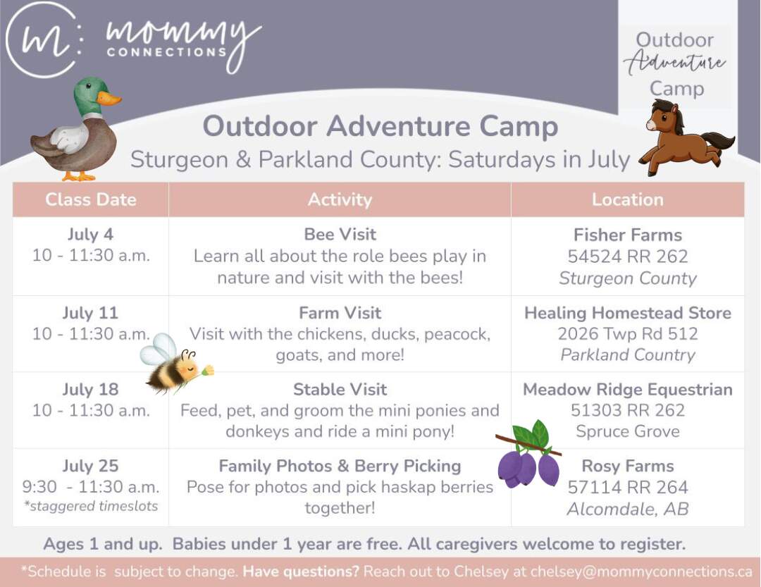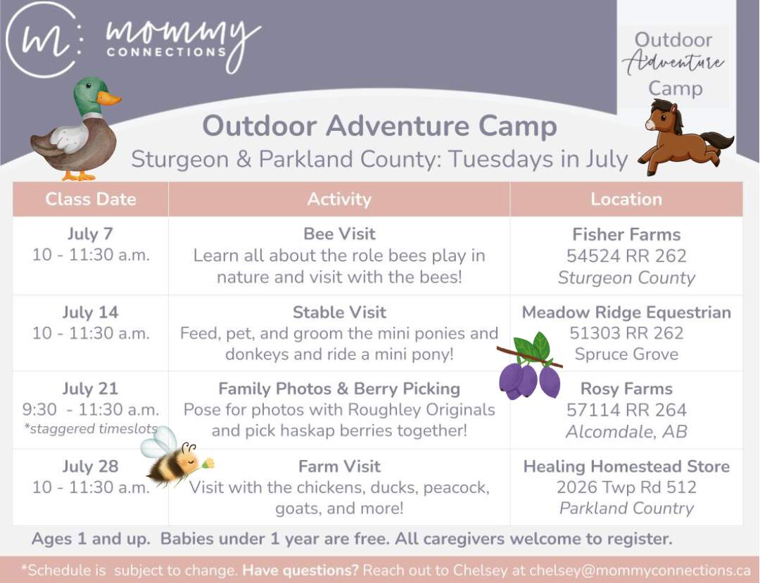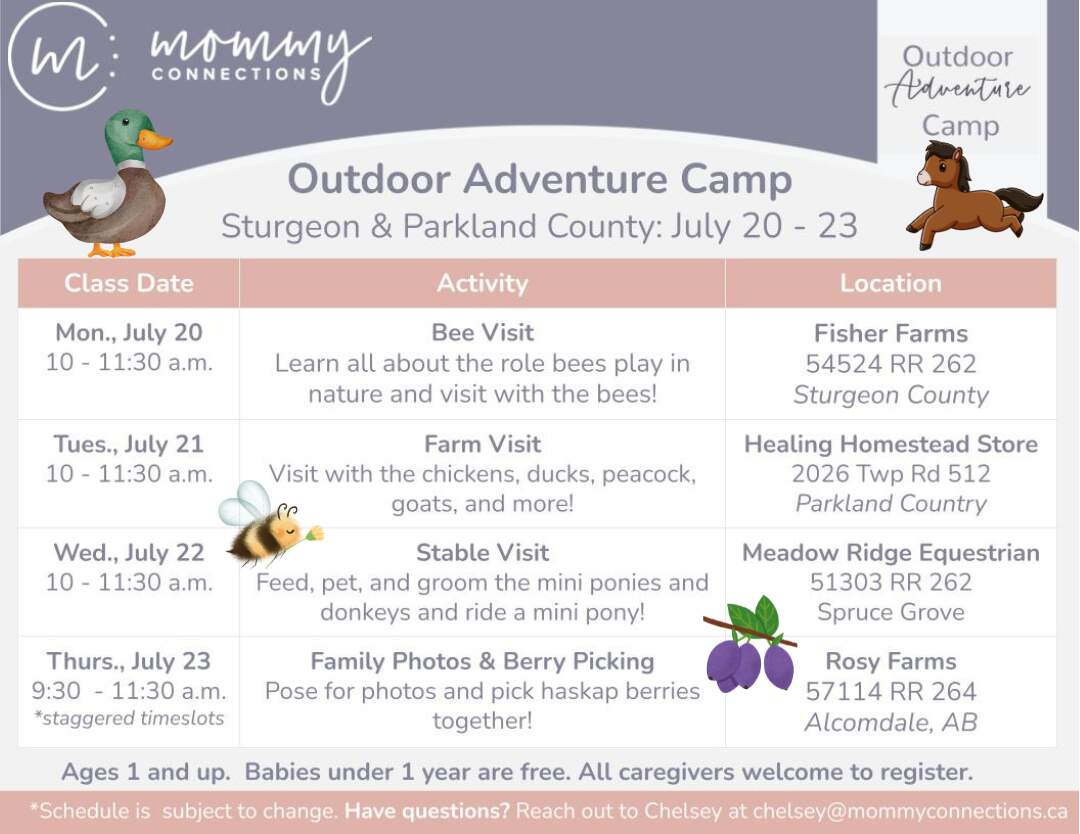 We will visit with the bees at Fisher Farms. We’ll pick haskap berries and have photos at Rosy Farms. We’ll groom, feed, pet and ride mini ponies at Meadow Ridge Equestrian. And we’ll spending the morning with the animals at Healing Homestead Store. *Activities and schedule are subject to change due to seasonal and farm availability.