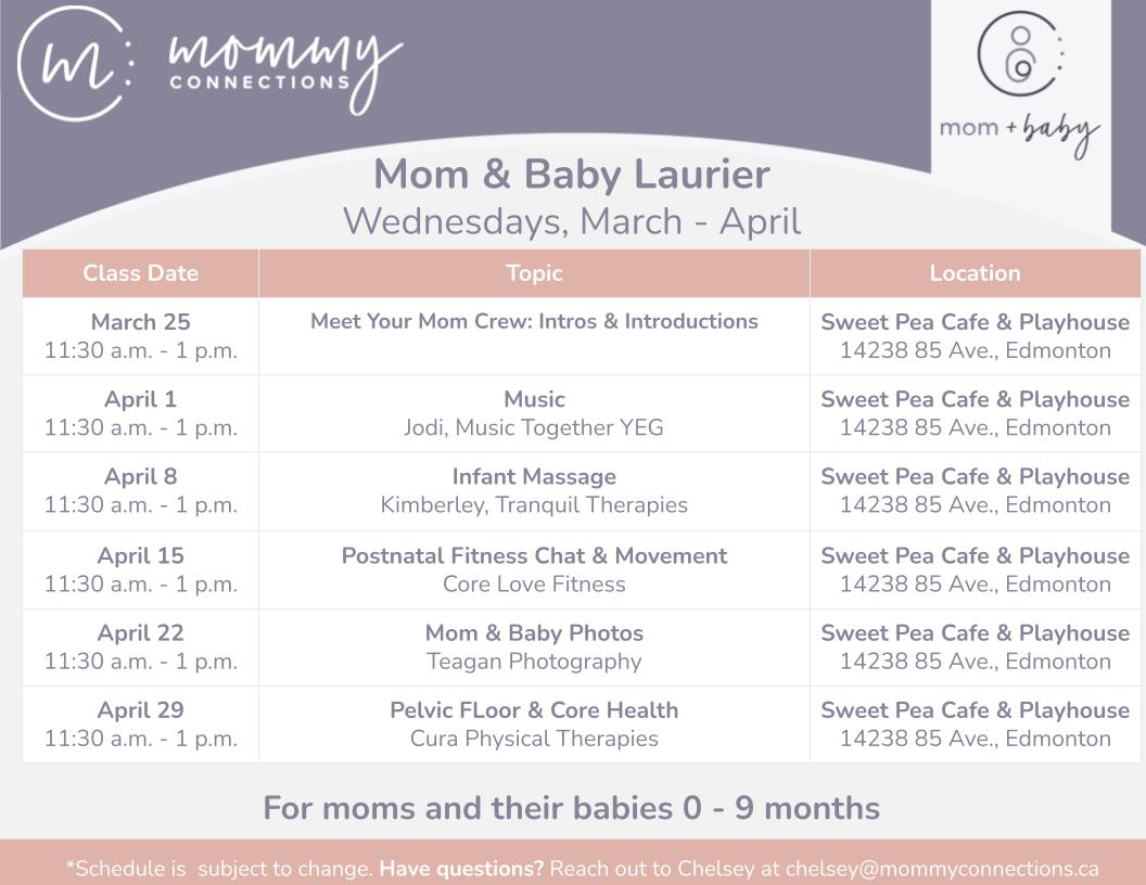 Learn, have fun with your baby, and meet other new moms in Central and West Edmonton in our Mom & Baby Program in Laurier Heights this spring.