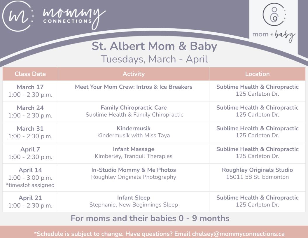 Learn, have fun with your baby, and meet other new moms in St. Albert in our Mom & Baby Program in St. Albert this spring.