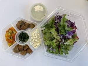 InspiredGo is changing this stereotype. Their mission is to inspire individuals to thrive by removing the barriers to healthy eating. For busy parents, that barrier can be access to readily made healthy food, no prep required. We’ve started to get used to some healthy make-at-home meal kits, these are great for dinner time but not exactly grab and go options. InspiredGO is different, they offer fresh ready-made salads, with a one week shelf life that are not only delicious but also affordable starting at $10 per salad with a minimum of a $40 order (4 salads). Ingredients are packed separately, with a removable tray on top where all the salad components are in a sectioned tray. This keeps things fresh for longer.