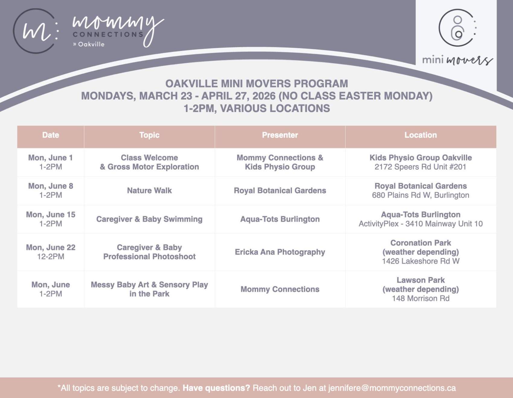 The days of chatting with other parents while your baby naps may be over – but it doesn’t mean the fun has to stop! Join our Mini Movers program taking place at various locations across Oakville.