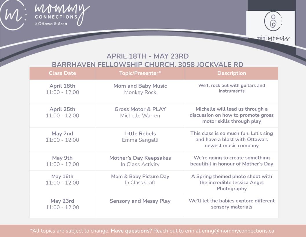 Is your baby on the move? We have a program for that! The days of chatting with other moms while your baby naps may be over – but it doesn’t mean the fun has to stop! Join us for our 6 week class in Kanata!