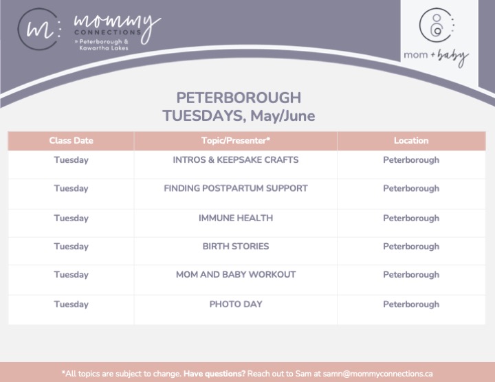 Sign up here to be added to the waitlist for our upcoming PETERBOROUGH Mom & Baby Program for moms with babies 0-7 months.