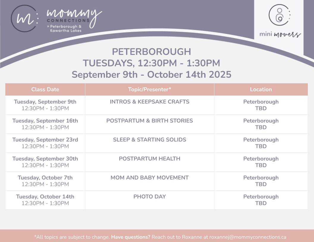 Sign up here to be added to the waitlist for our upcoming Peterborough Mini Movers Class for caregivers with babies 8-18 months.