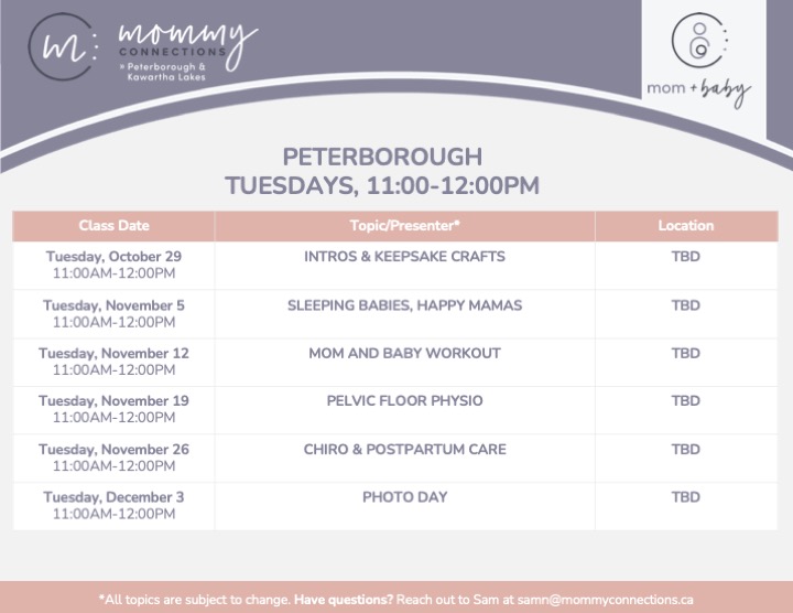 Sign up here to be added to the waitlist for our upcoming PETERBOROUGH Mom & Baby Program for moms with babies 0-7 months.