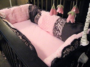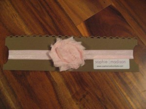 These girls know how to make a great product. They offer several different items in their chic online boutique (which, by the way, had me hooked as soon as the screen opened). Items such as custom crib bedding – bumper pads, crib skirts, fitted sheets…), toddler blankets, throw pillows, crib mobiles, ribbon blankets… adult blankets…wait, ADULT blankets in this material? Um, yes please. The also create adorable little headbands, which of course I had to add to Miss E’s birthday list… it’s definitely worth a visit to Sophie Madison Baby. I know you’ll love their products as much as my babe and I do!