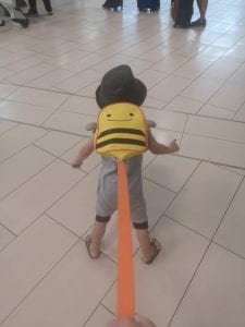 As we exited the plane,and headed for the luggage, I realised it was time to let him run. I was having trouble holding him and the backpacks. We have the leash backpack a test. It worked out really well while waiting for the luggage. I’m always watching for ‘the looks’ when my kid is crazy, and I knew we’d get them because of the leash. At that point, I didn’t care. It helped me stop him from running, and helped me grab our luggage (although not very easily.)