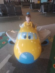 My kiddo has been extra active in the last few weeks. He runs away, and he is having a lot of trouble listening to me. He’s three. He knows what I’m saying, but chooses to ignore me. He’s also extra loud at times. Basically, he’s a toddler. I worry too much that we are going to bother everybody who we pass. Especially in an airport. I also had visions of him running off through the airport while I tried to juggle the carry-ons.
