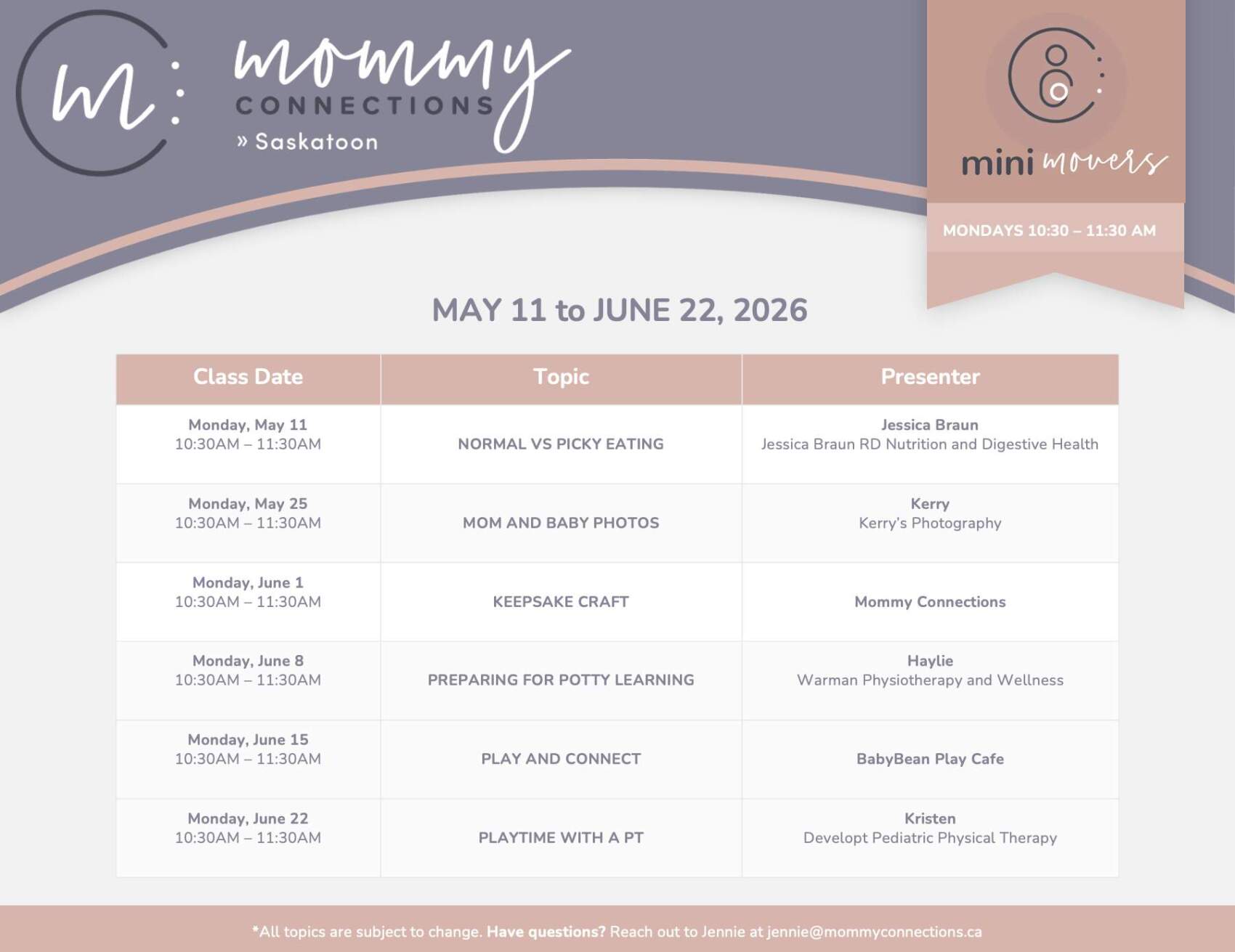 Each week we will meet at a different location for a new activity giving you and your babe the opportunity to experience a wide variety of what Saskatoon has to offer or we will meet outside in a local park, where the babies can play while we are joined by a local expert providing information and/or activities.