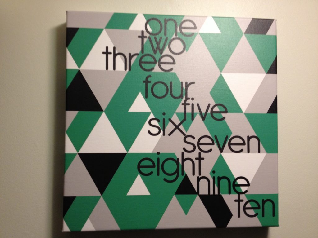 The beautiful canvas shown above is called “One to Ten”. It is 100% customizable to meet the color scheme of your child’s room. I couldn’t be more please with the finished product! It exceeded all my expectations! Perfect finishing touch to the “big kid”room!
