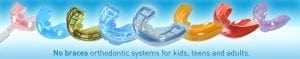 The Myobrace Program is an early interceptive orthodontic program that is easy to comply with and is fun to use. There are cartoon based activities that help to train away bad functional habits while replacing them with proper ones and then forming them into life long proper habits. There are portions of the program that addresses resting position of the oral and facial muscles, swallowing pattern, proper breathing techniques as well as posture. The Myobrace Trainer and Advanced devices are soft mouth pieces that resemble sports mouth guards. These are worn at night as the child sleeps and for one hour during the day. While wearing these devices, the jaws are positioned into proper alignment to guide the growth as well as gently aligning the teeth in the process.