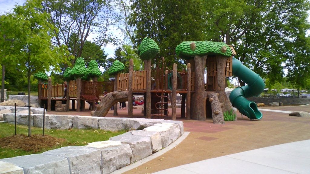 Just over the train tracks from Doug Duncan Drive – a stone’s throw away from Riverwalk Commons – is the All Our Kids Playpark. When you get tired of the water fun you can venture down Tom Taylor Trail, into the park known for having a fun sand area to dig for dinosaur bones. (Also known as Dino Park) The play structures here are quite unique and make for great climbing, balancing and swinging and is ideal for a wide age of ranges. Bring a picnic and sit under the gazebo or in the grassy areas around the park. Entrance to park can be hard to find and parking lot is on the smaller side, but we’ve never had an issue getting a spot. Also a short walk over from Doug Duncan Drive and the Riverwalk Commons – access from Timothy St (just east of the railroad tracks).